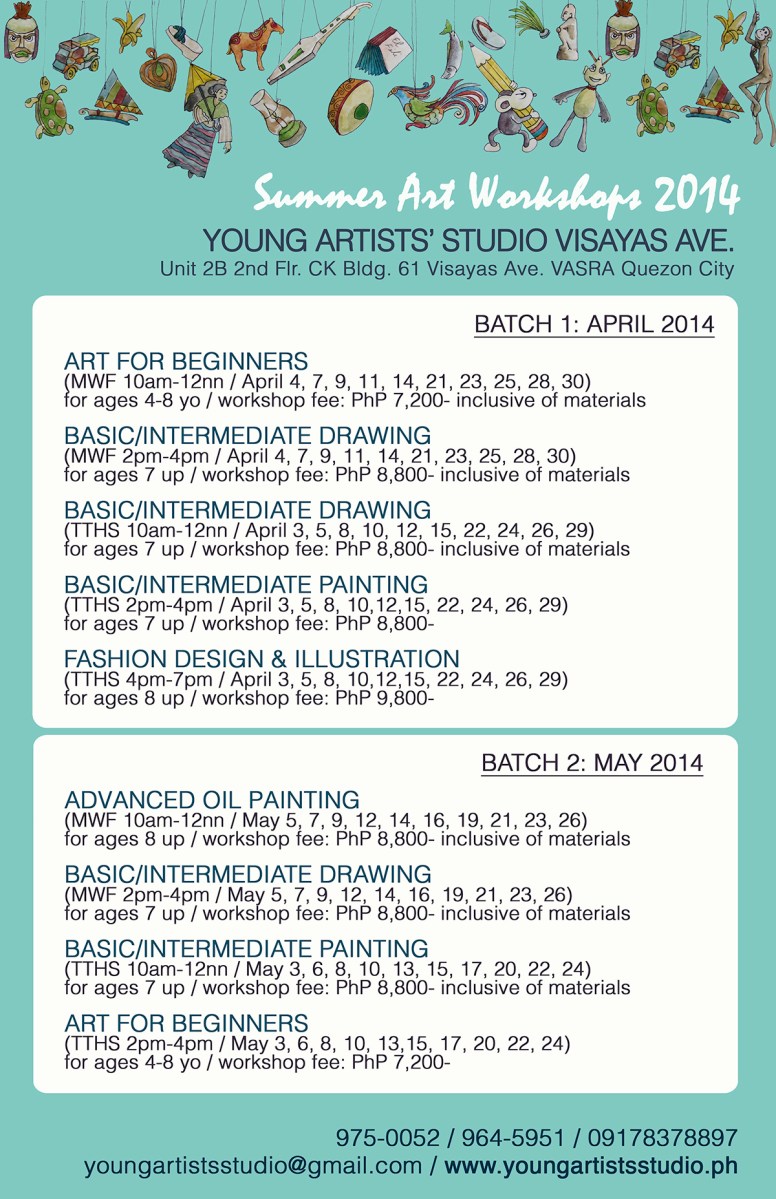 YAS SUMMER 2014 VISAYAS_lowres Published: March 10, 2014Full size: 1200 × 1855Attached: Summer Art Workshops 2014 by Young Artists’ Studio « » YAS VISAYAS AVE.
