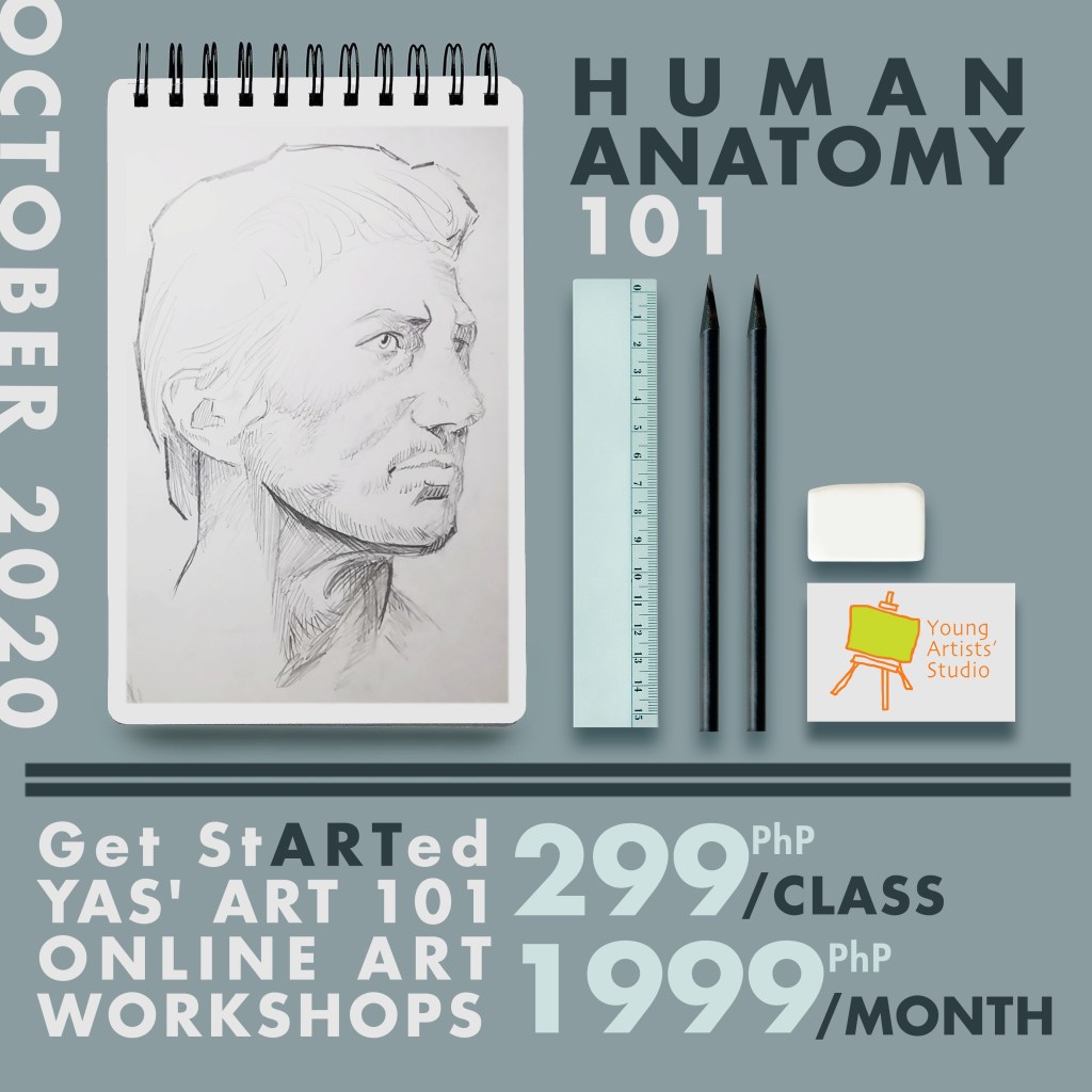 Get StARTed with our ART101 Series as we break down human anatomy for you. We know that for most aspiring artists, realistic drawing of human figures is the most intimidating. Young Artists’ Studio artist-teachers would like to share with you the simplest and most effective way to conquer this fear or enhance your already developing drawing skills. Eight (8) weekend online workshops are lined up for the whole month of October 2020 to make human anatomy easy and fun for you. And did we mention affordable too?