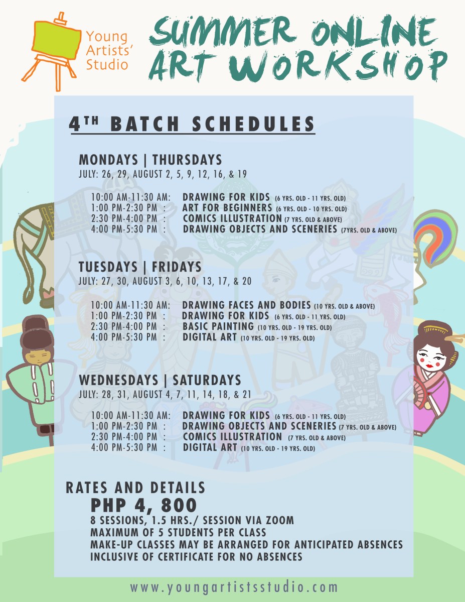 00 YAS SUMMER 2021 -JULY – AUGUST Schedules Published: June 18, 2021Full size: 2550 × 3300Attached: ART CLASSES for all ages « » Like Loading...