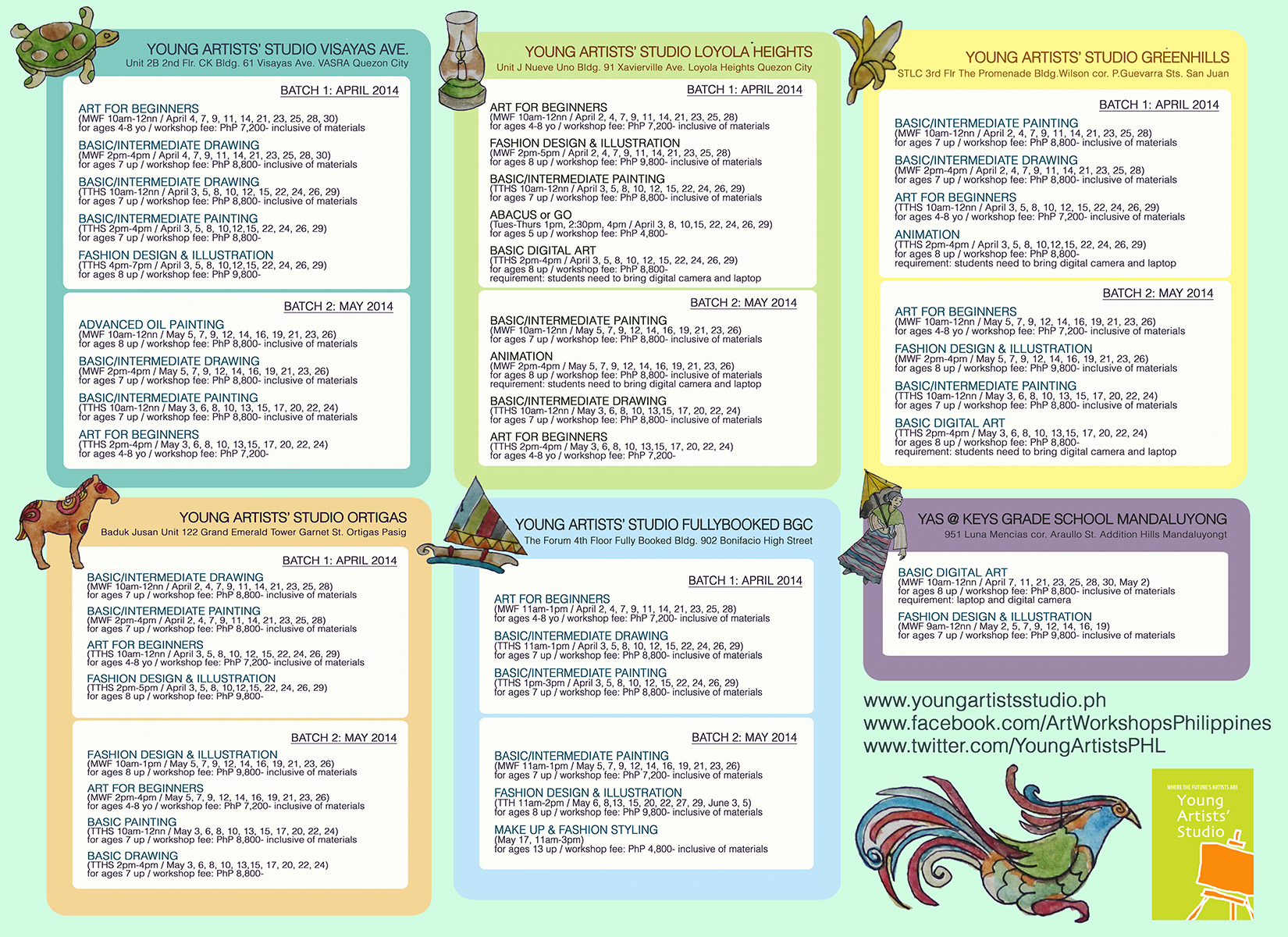 YAS SUMMER 2014 general flyer_lowres Published: March 25, 2014Full size: 1650 × 1200Attached: ART CLASSES for all ages « » Like Loading...