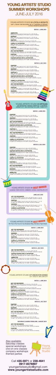 YAS Summer June-July 2016 Schedule Published: June 2, 2016Full size: 1200 × 8000Attached: ART CLASSES for all ages « » Like Loading...