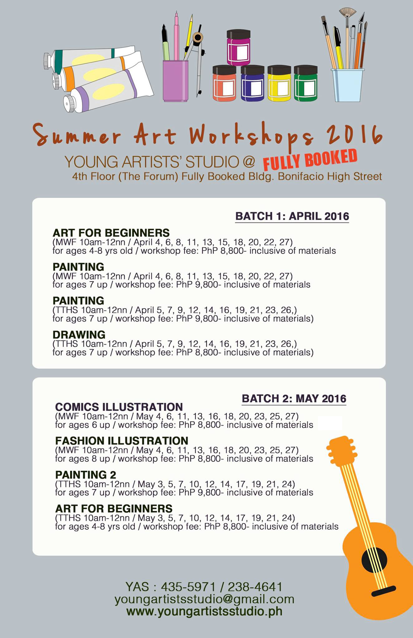 YAS Summer Schedule 2016 Fully Booked Published: February 27, 2016Full size: 1324 × 2048Attached: ART CLASSES for all ages « » FULLY BOOKED Like Loading...